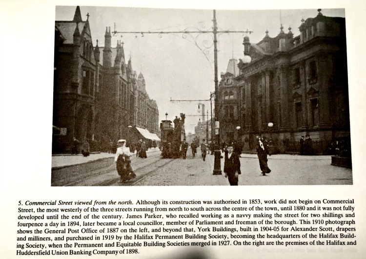 According to this map of 1835, Commercial Street and Huddersfield Road didn't exist. Ward's End, the house in the top picture existed but behind it was a large field(centre). No Victoria Theatre or picture houses or banks, but the Post Office is there. Much of the rest of the town roads as we know them can also be seen. So, Commercial Street is a comparatively new road.