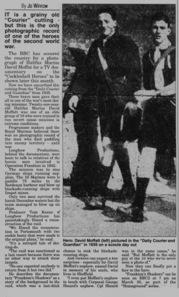 In December 1942, a young man from Halifax took part in one of World War II's most daring commando operations - a mission that would later become legendary. Marine David Moffatt, who grew up in our town and was an active member of the local scout movement, demonstrated extraordinary courage as part of an elite team of Royal Marine Commandos.