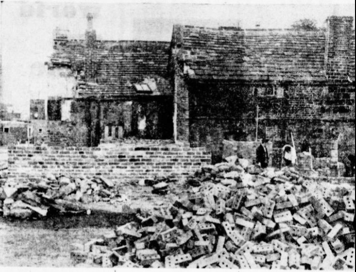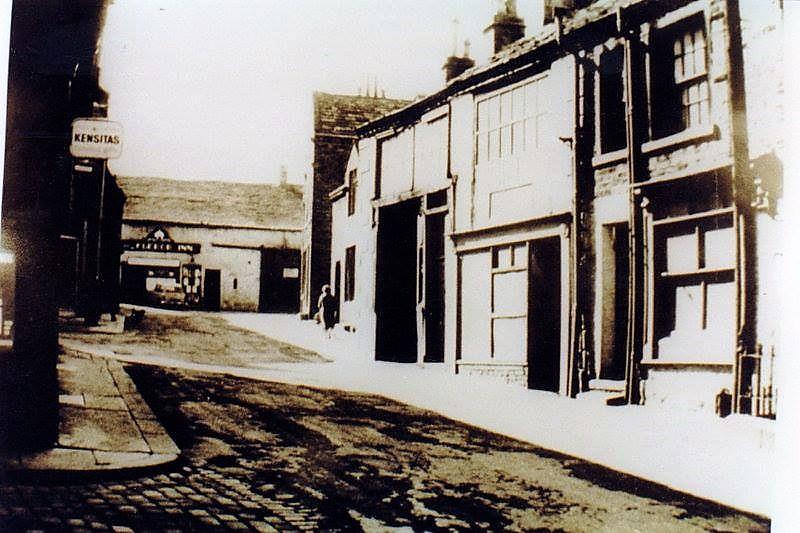On the right stood the Mexborough's Arms formally known as The Talbot, opened in the 1830s named after Lord Mexborough who owned property in Elland. The Mexborough's Arms closed in 1927. Further up the road was a fish shop then Swales Shop and Yard, further down was the