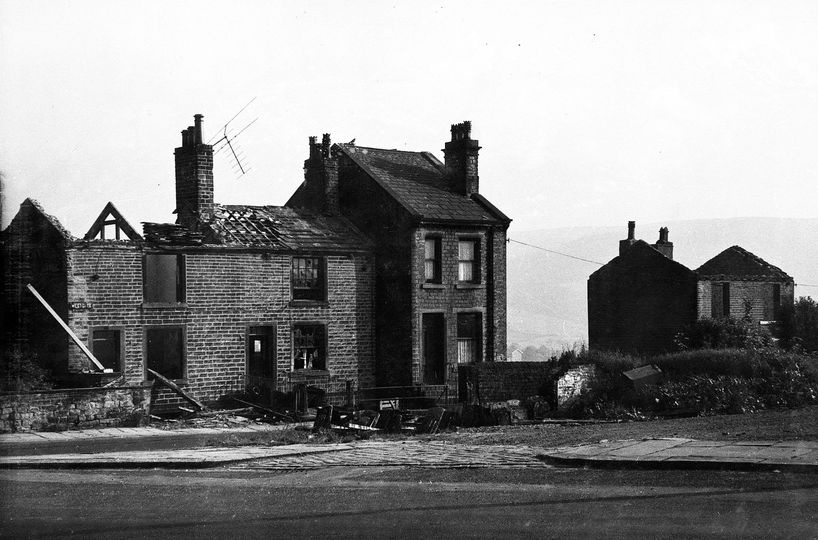 The corner of Hullenedge Rd and Jepson Lane, late 1800s. There was a gentlemen's club shown here up the steps all demolished in 1914 to allow the road to be altered to allow the tram to reach West Vale, The cameraman would be standing on Westgate with Long Wall on the top right