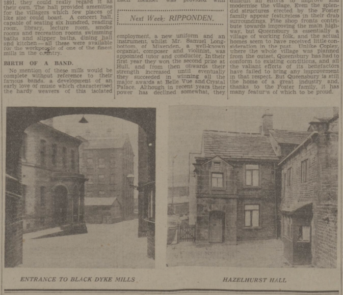 'Queenshead' was a name derived from the sign of the village's one and only alehouse which the villagers' agreed was unsuitable for a thriving hill-top village being named after a public house and eventually 'Queensbury' was the name adopted.