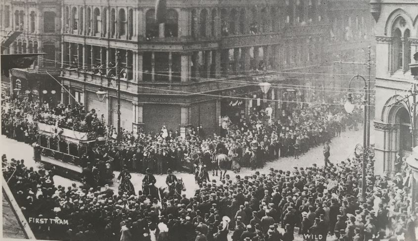 Silver Street rises up to the left of picture and Upper Crown Street rises to the right