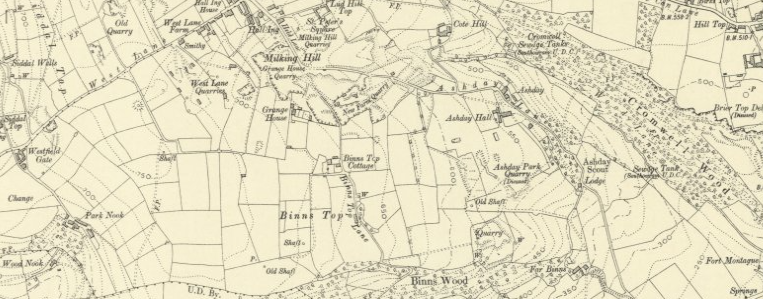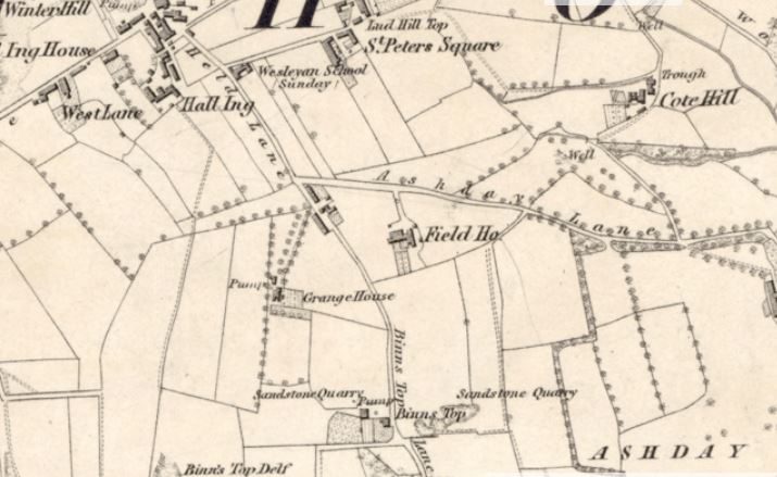 Ashday Lane Sunday School formerly known as Heald Lane. Further down Ashday Lane, where the cricket ground now stands, used to be the workhouse which dated back to at least the 1740's and the name 'Old Workhouse Quarry' was still current until at least the 1890's. There was also a row of terraced houses past the ground at an area called Binns Top