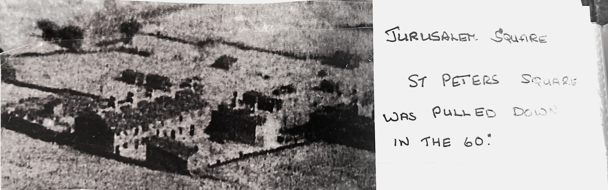 St Peters Square, School Lane in the 1960s. This is my late Father in law John west Clark, my late wife Ann Clark and my oldest son Garry Smith outside 5 St Peters Square . Barry Smith