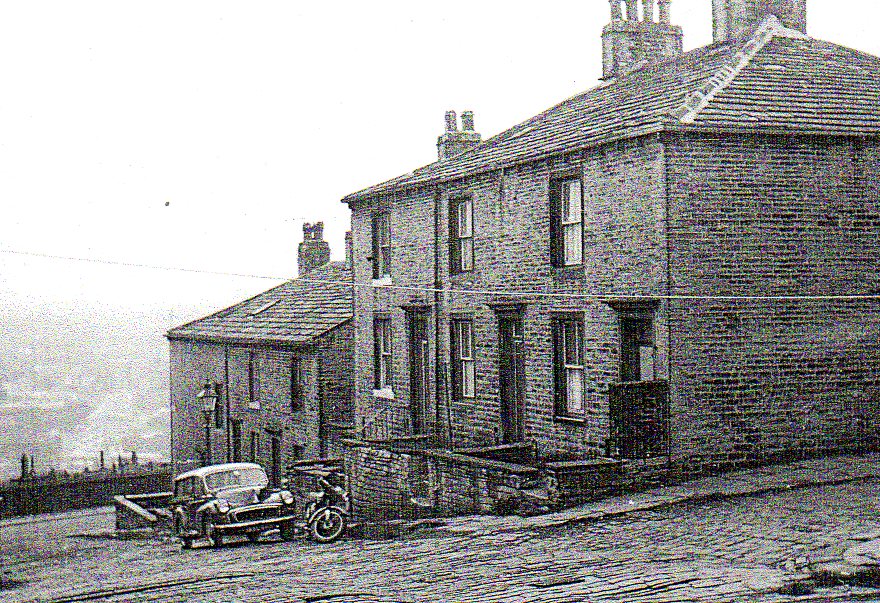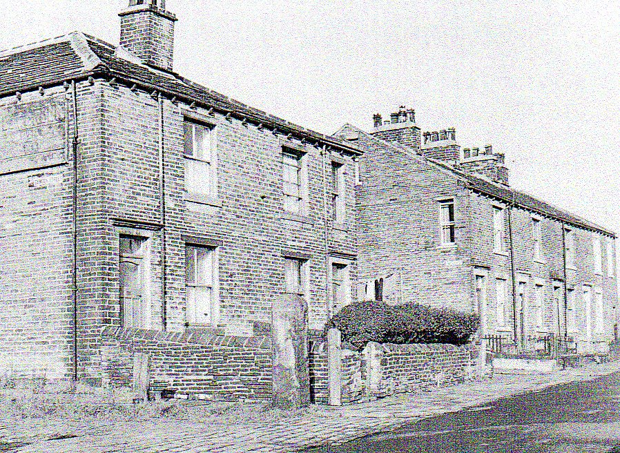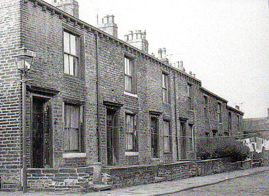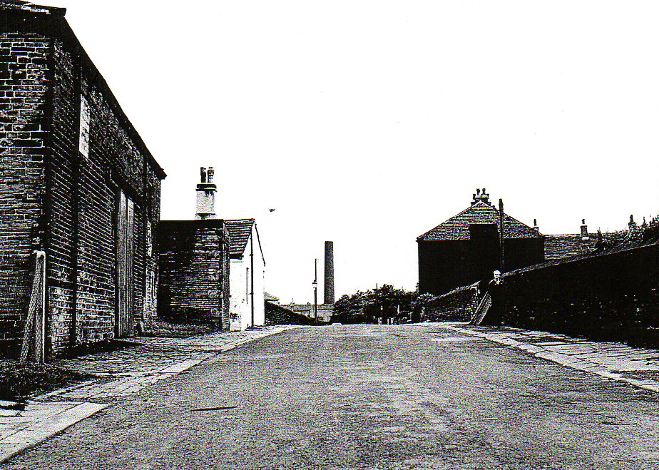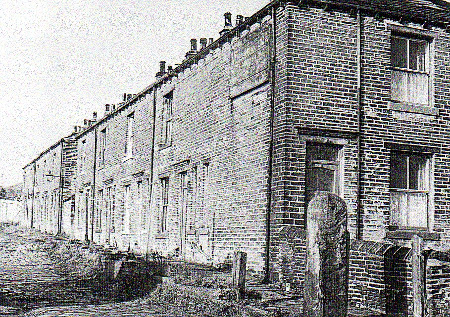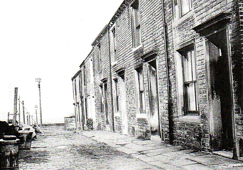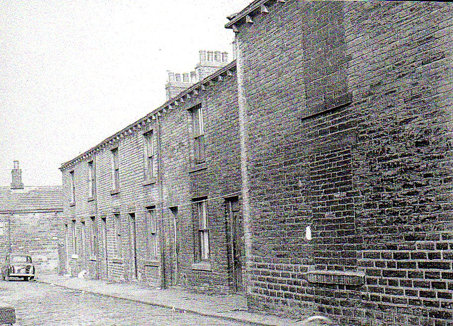 Gable end of St Luke's Street. W.C's middens etc. Horley Green Road in the distance