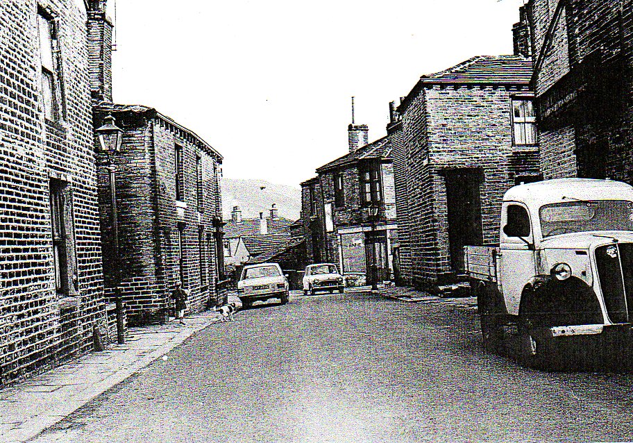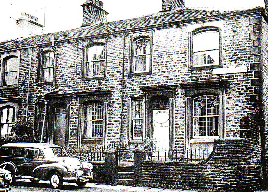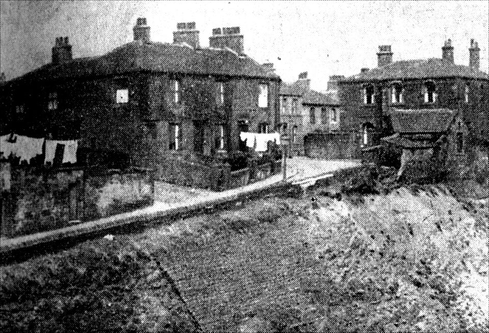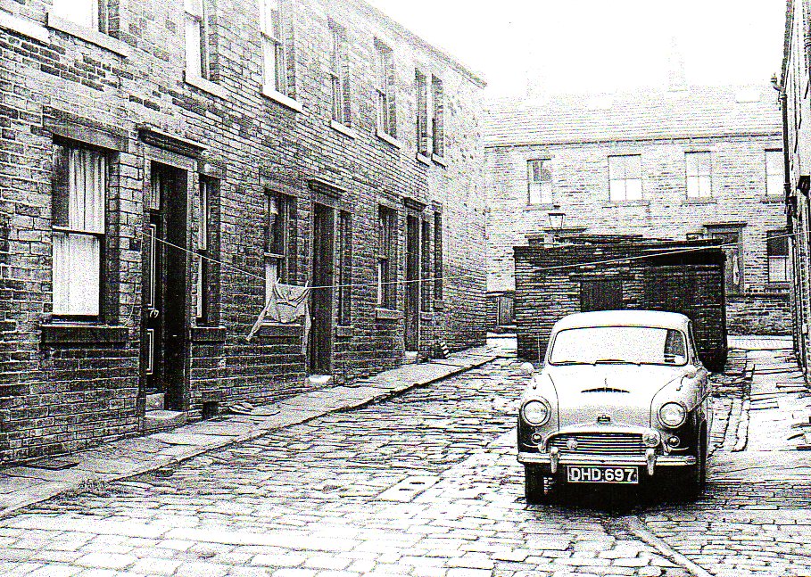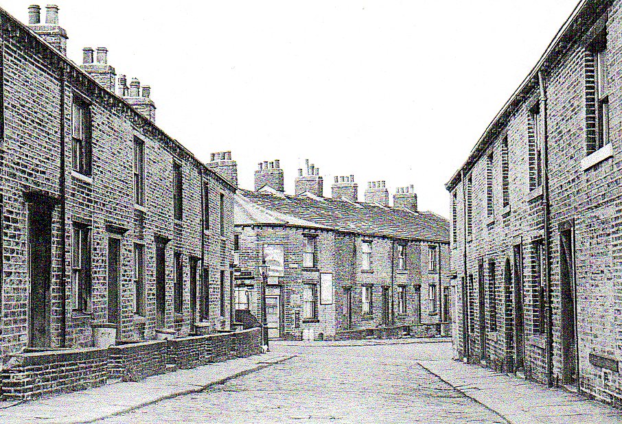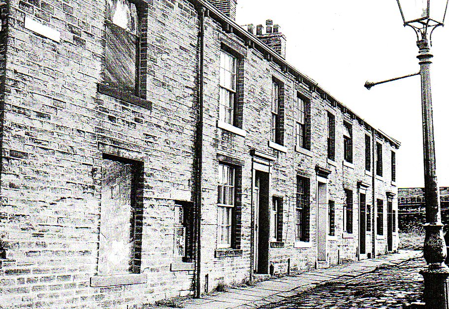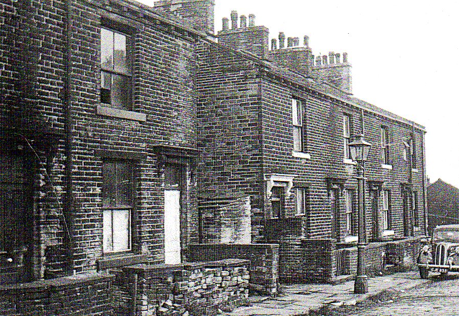 Gable end of St Luke's Street. W.C's middens etc. Horley Green Road in the distance
